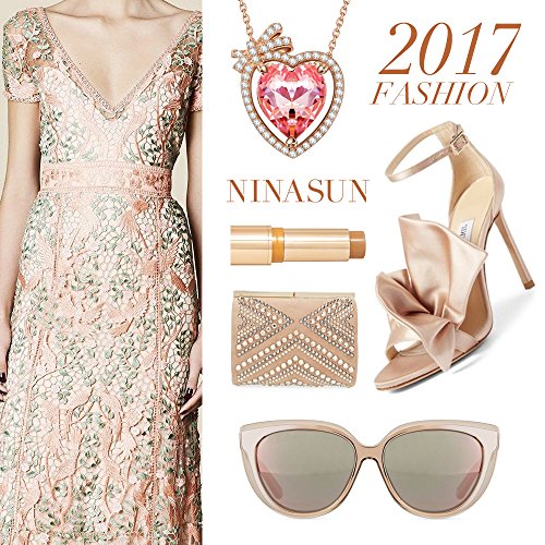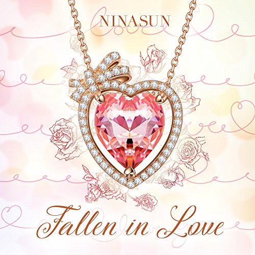-. Title : NINASUN "Fallen in Love" Gold Plated 925 Sterling Silver Heart Pendant Necklace Made with Swarovski Crystals