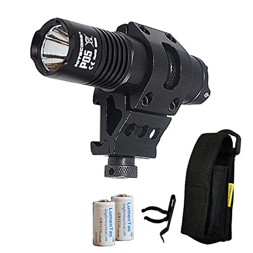 Nitecore P05 460 Lumen Strobe Ready Mounted Tactical LED Flashlight with Offset Mount and 2x LumenTac CR123A Batteries - Perfect for Home and Self Defense