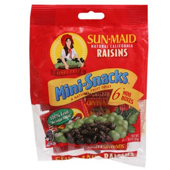 -. Feature : Included are 4 bags of 6 mini boxes each, with total of 24 mini boxes / With Sun-Maid Raisins, you get it all - quality, taste, convenience, and all-natural goodness. / Healthy snacks for your family on the go. / SP.R.Inkle them on your cereal or on your salads, mix them with munchies, stir them into your favorite recipes, or just eat a handful for a quick energy boost.