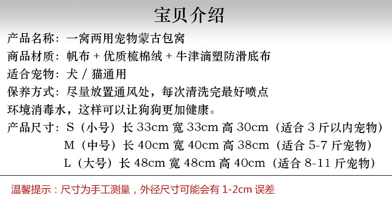 S (33*33*30cm) for 3 pounds less than a pet