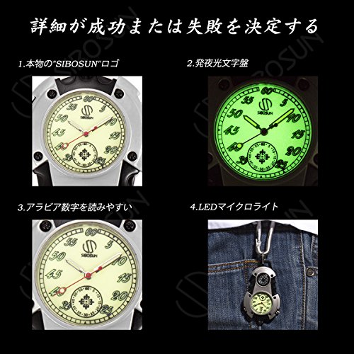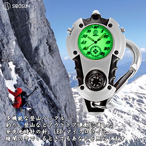 원본상품명: SIBOSUN カラビナウォッチ 夜光 白文字盤 ミニクリップウォッチ 時計 釣り 登山 LEDライト付き