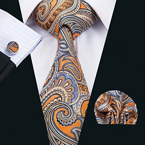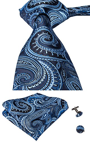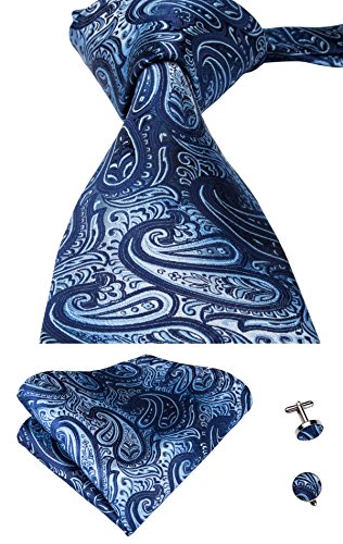 Hi-Tie hi-tie Herren Seide Paisley Hochzeit Krawatte Krawatte Einstecktuch Manschettenknopfe Set
