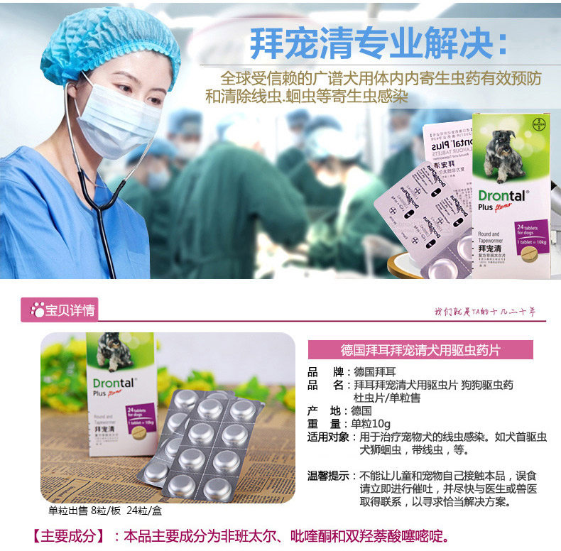 Name: pet dog with Bayer worship Qing anthelminthic tablet insectifuge deworm dogs tablets (single grain sale)
