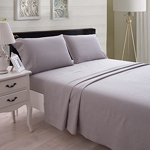 Simple&Opulence Linen Cotton Blend Sheet Set 4PCS Solid Color (Queen, Grey)