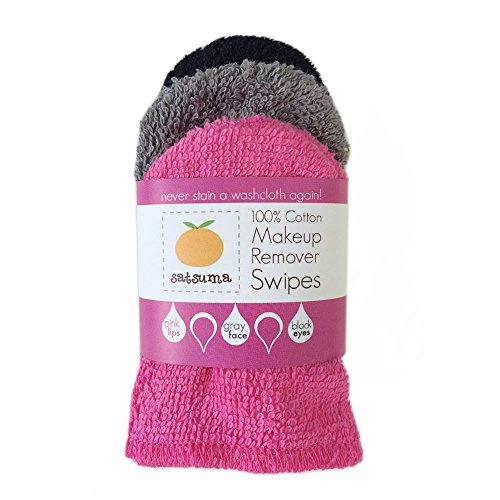 -. Feature : 100 percent cotton terrycloth makeup remover swipes / Pink, gray and black reusable makeup swipes fit over 3-4 fingers for easy, stain-free makeup removal / To use, simply dampen swipes with liquid makeup remover or mild soap and water and clean face as usual / 6 swipes in each package - 2 pink, 2 gray, 2 black / Made in the USA