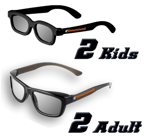 Includes: 4 Premium Black Pairs of 3D Glasses (2 Adult + 2 Kids), retail package, glasses cleaning wipe and instructions!