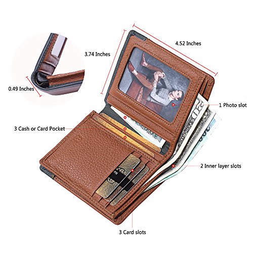 Product Specifications: Product Size: 4.52×3.74×0.49 inches. Product weight: 72g. 3* money slots 3*card slots 1*photo slot 2*Inner layer slots