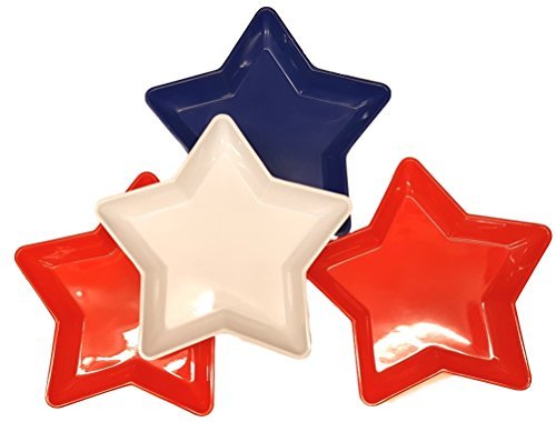 -. Feature : Assorted Star Shaped Trays for Serving / Available in Red, White and Blue / Star trays about 10" diameter