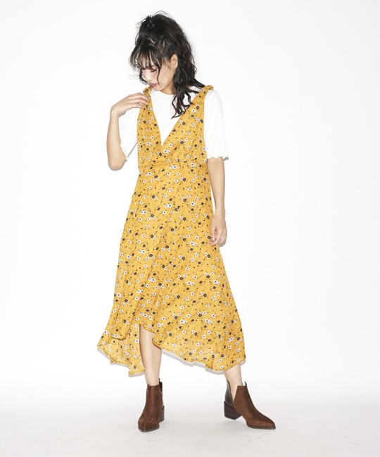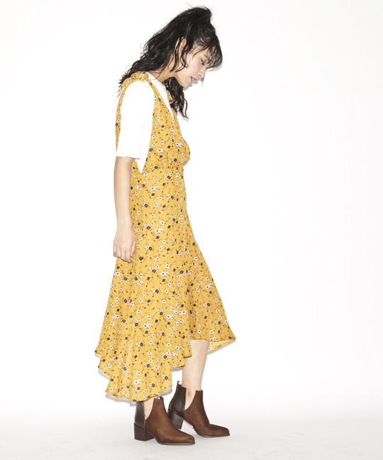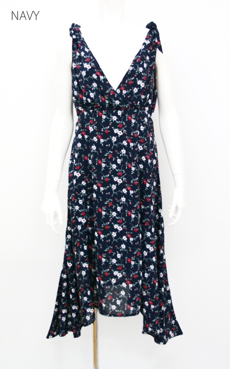 肩紐を自分で結べるようになっているので、調節が簡単にできるワンピースです。