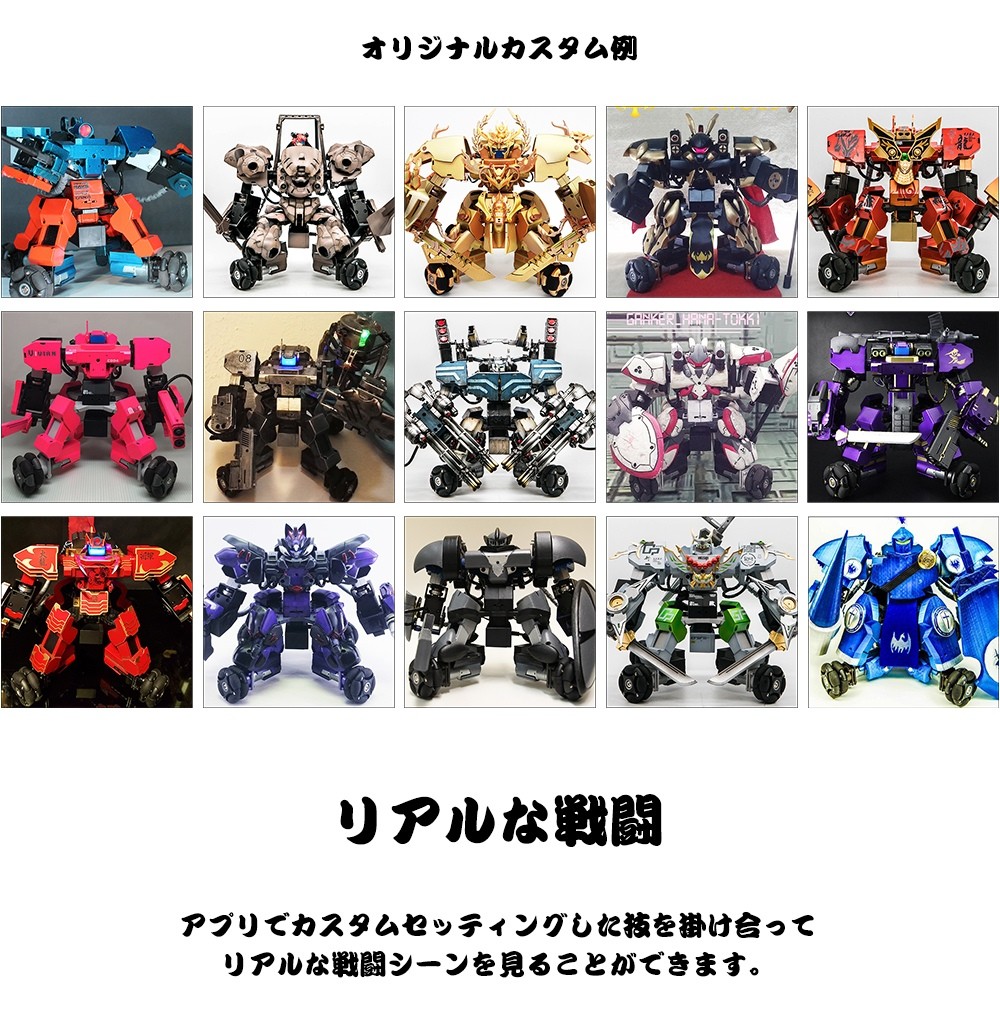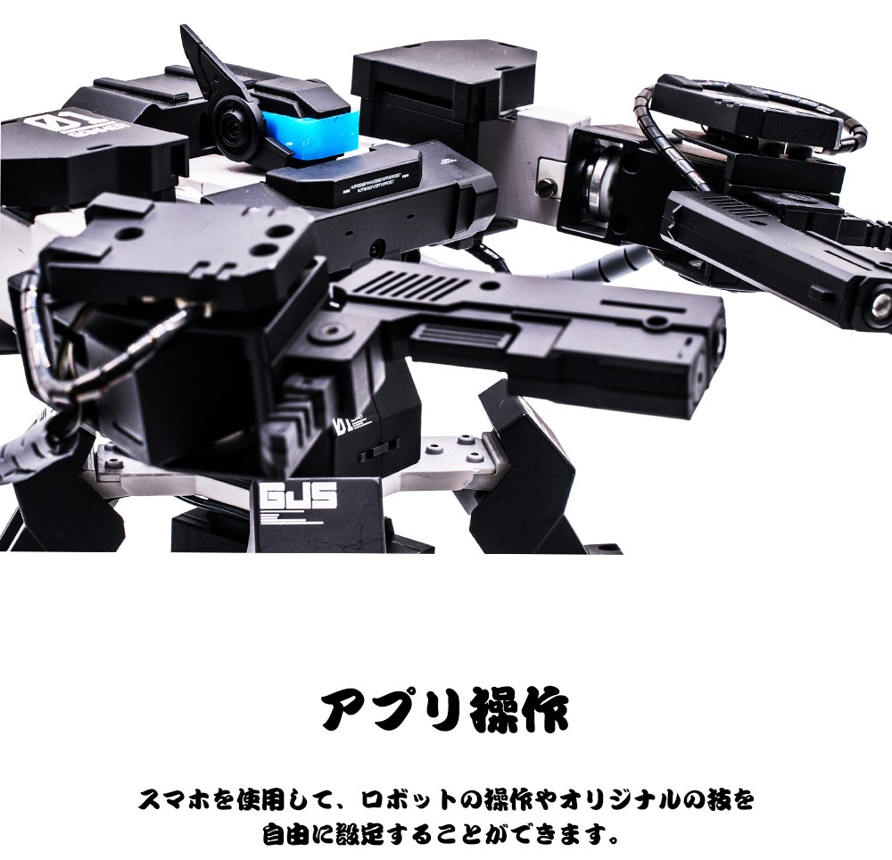 | 詳細 | サイズ - 200×210×210mm 重量 - 1520g(武器含まず) 素材 - アルミ、PC+ABS バッテリー - 7.4V、1500mAhリポバッテリー 対応端末 - iOS / Android 操作方法 - アプリ操縦 接続方法 - Wi-Fi接続 |