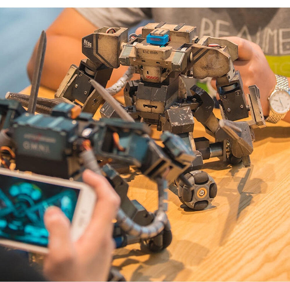 | 注意事項 | こちらの戦闘ロボットは、使用中に激しい衝突が起こる可能性がございます。 使用中に無理な操作を行うと、モータの故障やパーツの破損などの原因となります。 操作前に、ロボットの性能と操縦方法を十分理解したうえでご利用ください。 |