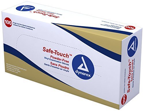 Dynarex Safe-Touch Vinyl Exam Glove Powder Free, Large, 100 Count