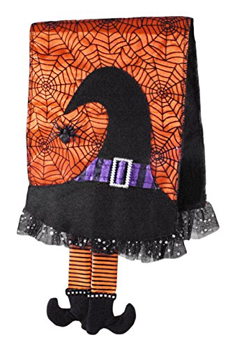 Witch's Hat & Spider Webs Black & Orange Tea Towel with Dangling Legs