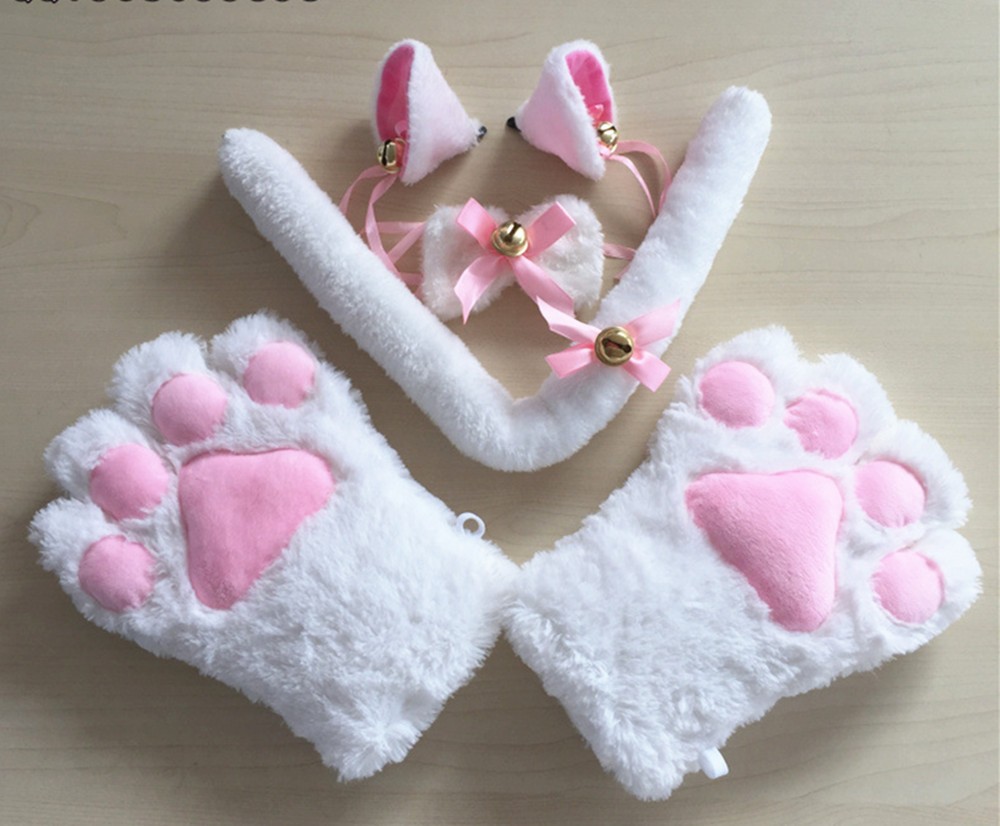 ☆ぷにぷに肉球付きねこの手+パッチン留め猫耳+紐結び式蝶ネクタイ型首輪+フワモコ猫の尻尾の4点セットです(^^♪☆猫耳、首輪、尻尾の猫鈴が動きあわせてリンリン可愛い音を奏でます。【サイズ】猫の手:25x18x5cm、カチューシャ:21x13cm、首輪:11x7cm、しっぽ:3.5x50cm【カラー】ホワイト+ピンク/ブラック+ピンク/キャメル+ピンク/グレー+ピンク/ピンク+ホワイト ※ブラックはキラキラします! ☆萌え萌え感たっぷり、モコモコふわふわの猫の手です(^^♪☆写真で見る以上に実物は大きめ!☆ブラックは、黒猫の毛を撫でているかと錯覚するくらい、つるつるキラキラです!☆ホワイトは、頬ずりしたくなるくらいフワフワです!☆「萌え萌えにゃんこ 胸あき ランジェリー」と合わせれば、完璧な萌え萌えにゃんこコーデのできあがり~(^^♪