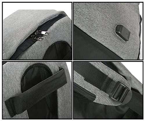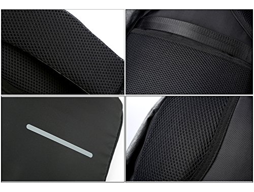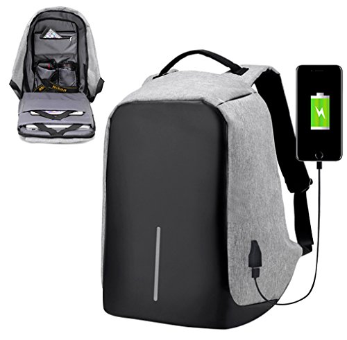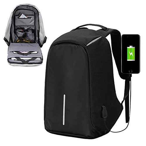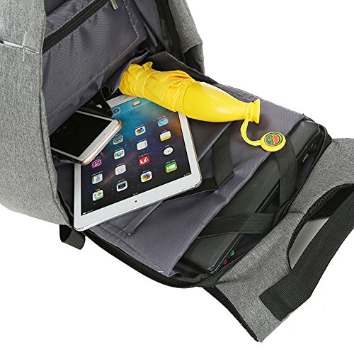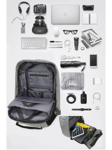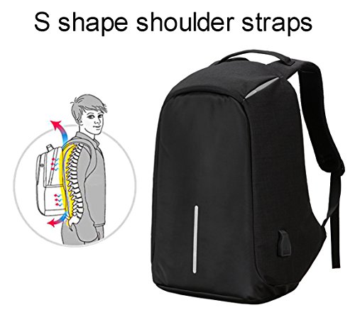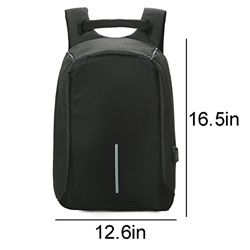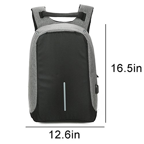 Product Description STRUCTURE: Material:water-resistant polyester and PVC Dimensions: 16.53*12.59*3.93 inch Fits laptop size:13 14 15.6 inch Weight:1.98 lb Function:Anti-theft pocket Compartments:laptop, Tablet, Power Bank, Cords, Water bottle etc. FEATURES: Made of polyester and PVC.It fits up to 15.6 inch laptop are suitable for business, school, hiking, traveling, camping,laptop, and daily usd. USB charging port backpack offers people easy carrying and you can go where you like.What's more, Anti-theft Backpack has a roomy space to meet all your every day carry needs.