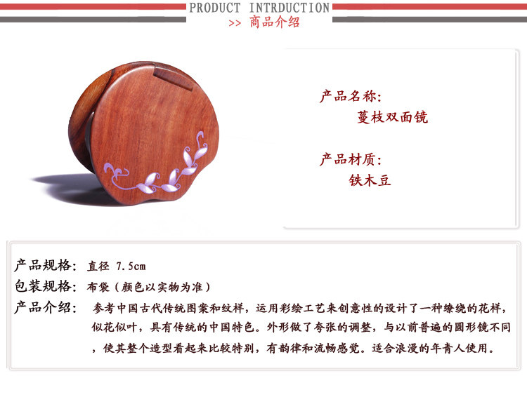 谭木匠镜子 蔓枝双面镜便携化妆镜子随身口红镜送女生