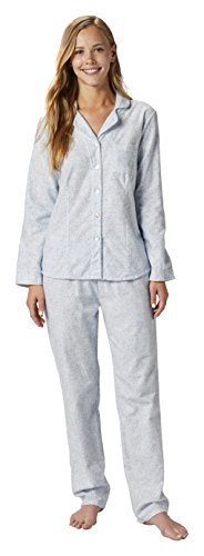 Coyuchi Women's Cloud Brushed Organic Flannel PJ Set, Small, Blue Forest Print