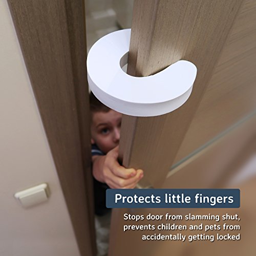 * Baby proofing doors, ensures baby hands and fingers safety * Prevets finger pinch and jamming injuries * Allows cats and dogs to move freely by preventing door slamming shut * Prevents accidental door locked * Easily installable, long lasting usage. * Non-toxic, environmentally friendly EVA foam door stopper. * Beautiful artwork, high quality gift ready packaging. * Designed in New Jersey, U.S.A.
