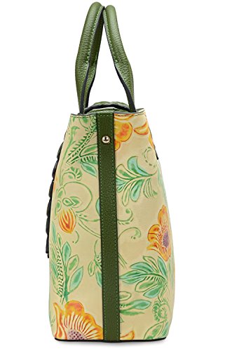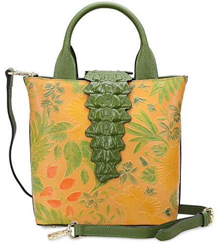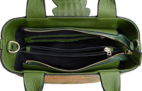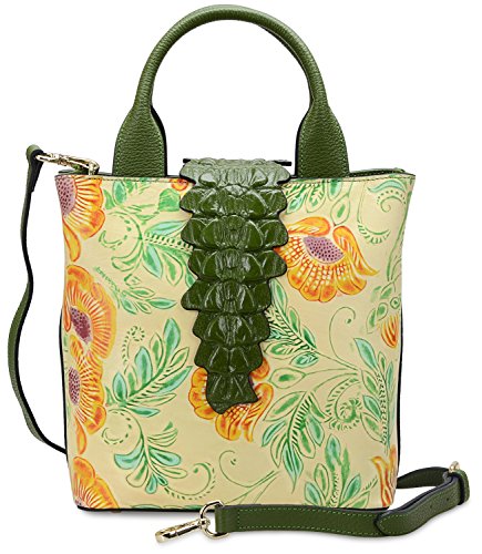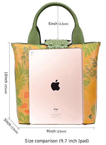 -. Feature : 100% Genuine Cow Leather with 100% hand drawing beautiful and colorful rose in the leather surface; / Lining fabric;Flap closure ,Golden -tone hardware; / Measures approximately H10" x W5" xL9", Double handles with 5" drop, 45" adjustable and removable strap; Weight: 1.11kg(2.44lbs) / Interior features a middle zipper compartment for separate and storage, 2 zipper pockets and 2 slip pockets; / Can hold and 9.7 " Ipad, And can mobile phone, wallet, umbrella, cosmetic, key chain, and other daily things.Perfect for work, party, daily use, etc