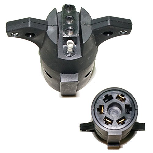 7 way round (tow vehicle end) to 4 pin flat (trailer end). This is the style of plug adapter to use if our tow vehicle has the 7 round connection and your trailer has the flat 4 pin plug