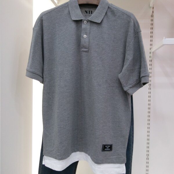 시원한 여름 카라 반팔티.밑단레이어드,패치가 포인트색상배합이 예쁘네요.