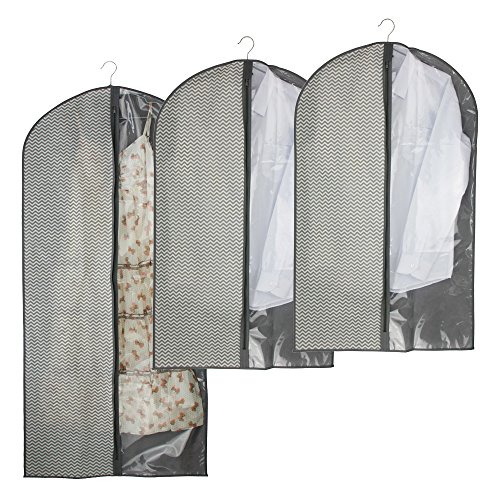 -. Binding : Kitchen -. Brand : Homyfort -. Feature : KNOW WHAT'S INSIDE: the clear part eliminates needing to guess what's inside the garment bags. / SMART TRAVEL:Conveniently hook a hanger through the metal eyehole and fold the bag in half for trouble-free travel. / BUILT TO LAST: A reinforced zipper & hanger opening ensure this suit carrier will last a lifetime. / DIMENSION:2pcs 40" X 24"and 1pcs 54" X24". -. IsAutographed : 0 -. Label : Homyfort -. Manufacturer : Homyfort -. ProductGroup : Home -. ProductTypeName : HOME -. Publisher : Homyfort -. Studio : Homyfort -. Title : Homyfort Garment Bag Cover Storage For Suit Dress Clothes Travel With Full Zipper Clear Window Set Of 3 Grey Stripe