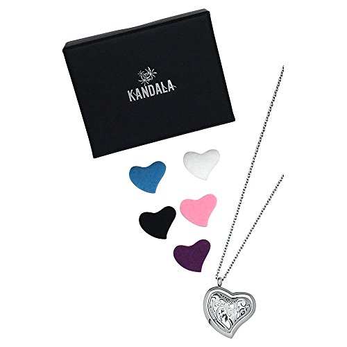 Aromatherapy Essential Oil Diffuser Locket Pendant (30 mm) with Necklace and Pads, Hypo-allergenic 316L Stainless Steel, Heart Shape, Gift Set