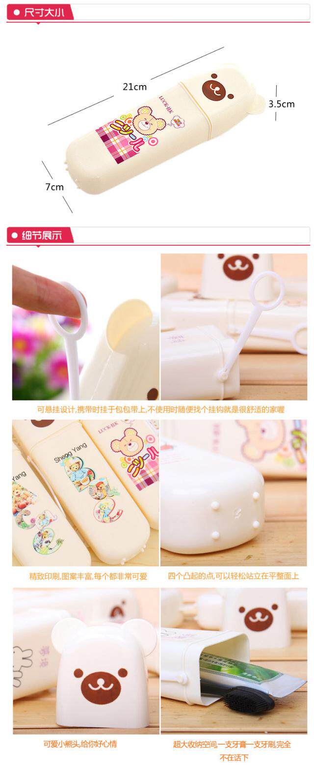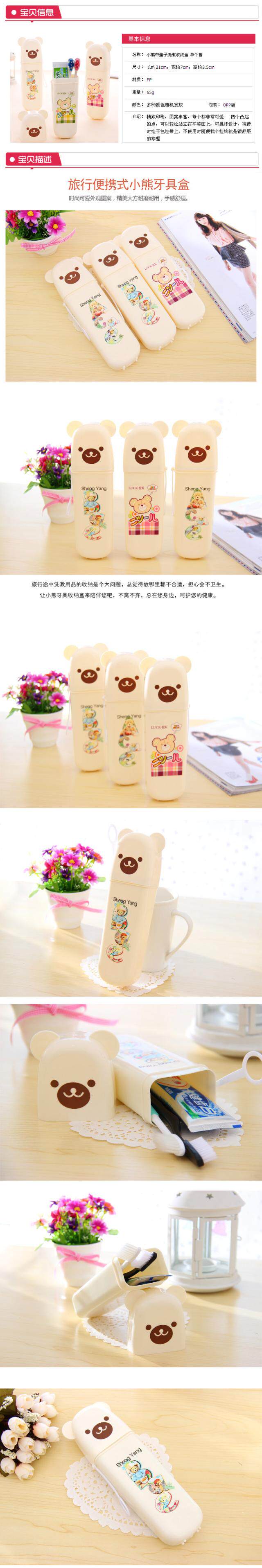 (买1送1) 可爱小熊牙膏牙刷盒 户外旅行便携式牙具收纳盒套筒 旅游漱口杯