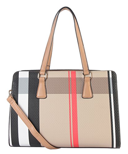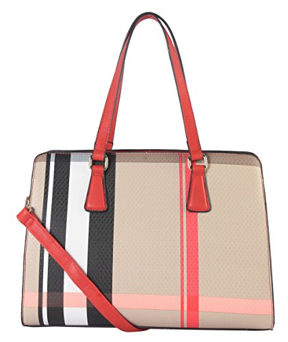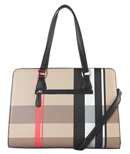 -. Brand : Diophy -. Color : Black -. Department : womens -. Feature : This handbag comes in 3 different colors: Black, Red, and Taupe. / High Quality PU Leather Plaid Pattern Large Multi-spaced Tote Bag. / High Quality Fabric Lined Interior with Multiple Interior Pockets. 3 Compartments with 2 Zippered Pockets and 2 Open Pockets Inside. 1 Zippered Pocket Outside in the Back. / Approximate Size info: Length 14.2" x Width 6" x Height 10" Material: PU Faux Leather. Top Zipper & Magnet Closure. / Color showing in other color is to show the different variation angles of the handbag. The actual bag ship, will be the one your purchased. -. Label : Diophy -. Manufacturer : Diophy -. Model : FGZ-6272 Parent -. PackageQuantity : 1 -. ProductGroup : Shoes -. ProductTypeName : HANDBAG -. Publisher : Diophy -. Size : Large -. Studio : Diophy -. Title : Diophy Plaid Pattern Large Multi-spaced Tote Bag