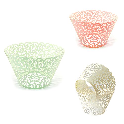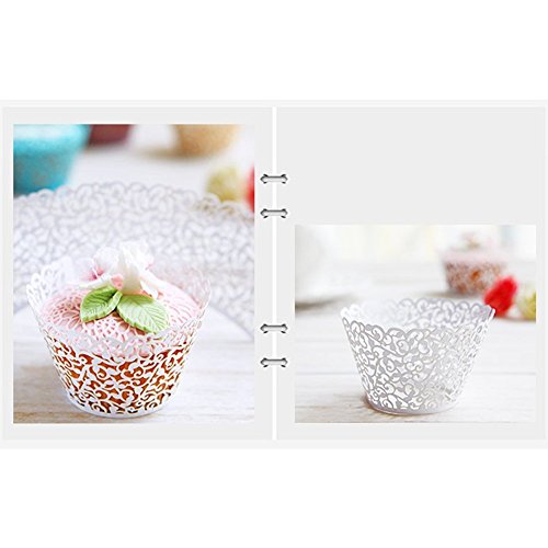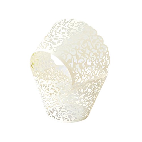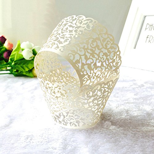 Liangxiang Cupcake Wrappers, 50pcs Filigree Vine Designed Decor Artistic Bake Cake Cups Wrapper Muffin Case Trays for Wedding/Birthday Party Decoration (white)