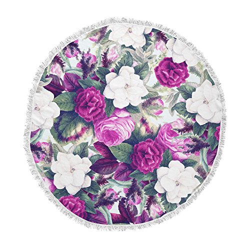 KESS InHouse 83 Oranges Exotic Flora Lavender Purple Painting Round Beach Towel Blanket