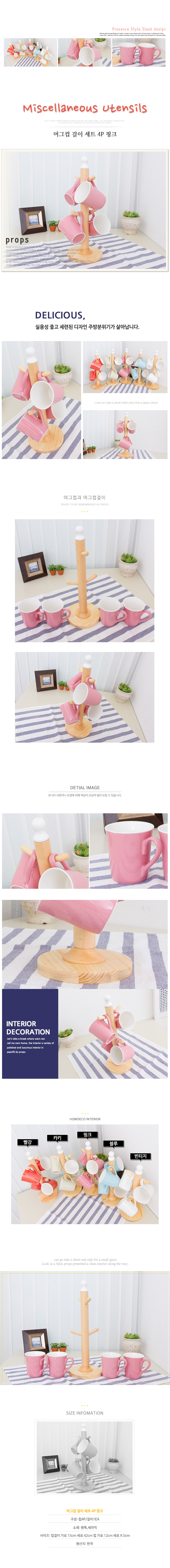 Cup Holder Set 4P Pink Cup Round Wooden Cup Mug