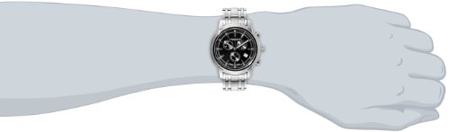 -. Feature : Chronograph features include 60 second, 30 minute timer, and date sub dials / Silver-tone hour markers and luminescent hands on the Black dial / Silver-tone, stainless steel, case and bracelet / Swiss Quartz Chronograph movement / Water-resistant to 30 M (99 feet) / Chronograph features include 60 second, 30 minute timer, and date sub dials / Silver-tone hour markers and luminescent hands on the Black dial / Silver-tone, stainless steel, case and bracelet / Swiss Quartz Chronograph movement / Water resistant to 99 feet (30 M): withstands rain and splashes of water, but not showering or submersion