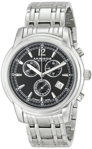 -. Title : Akribos XXIV Men's AK692SSB Ultimate Swiss Quartz Chronograph Black Dial Silver-tone Stainless Steel Bracelet Watch
