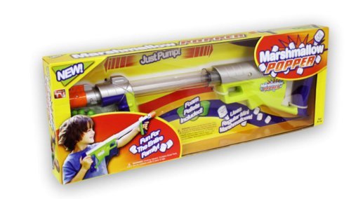 Studio : Idea Village Publisher : Idea Village Binding : Toy Product Description Marshmallow Popper Gun Fun for the entire family Pump-action rapid fire shoots mini marshmallows over 30 feet. The easy-to-refill magazine holds 20 marshmallows or foam pellets for non-stop action. Includes foam shooting pellets Shoots mini marshmallows over 30 feet Includes cut out target 0