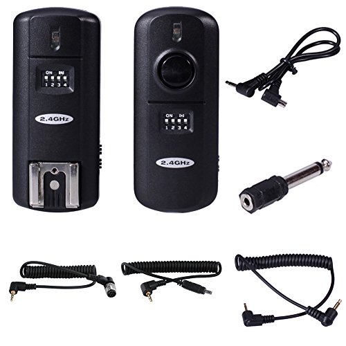 - Feature : Wireless Frequency System: 2.4GHz / Operating Distance: up to 100meters / 16 Selectable Channels / Also Compatible with: Fuji S5 Pro, S3 Pro / Includes: Wireless Camera Flash Trigger and Camera Remote Control Function (1 Transmitter, 1 Receiver) + N1 camera cable + N3 camera cable + Flash Sync Cable + PC Sync Cord + Sync Adapter