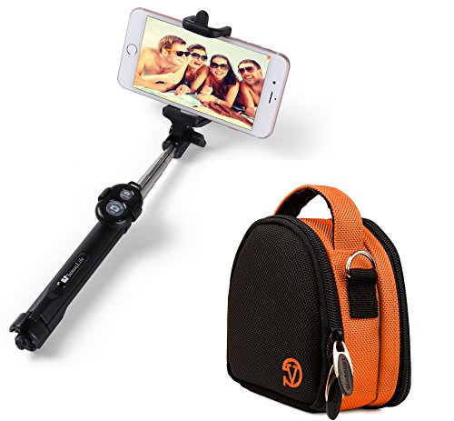 -. Feature : Fine Nylon Material on Camera Case. Top handle lets you carry with comfort. Holds cameras/camcorder and other additional accessories. Padded camera compartment to provide superior protection . Rear pockets allow fast access to accessories: SD Memory Cards, Cables, Charger etc. Adjustable, removable shoulder strap with extra padding / Approximate Exterior Case Dimensions: 4.75" X 4.75" X 2.5" inches. Approximate Camera Compartment Dimensions: 4.25" X 3.6" X 2.0" inches / The selfie stick has 270 degree adjustable head: The mount at the top of the selfie stick can be positioned at any point through a 270 degree arc, allowing you to adjust the position according to the specific shot you are taking. Light and compact, this selfie stick is 7.5 inches long when retracted, and 27.5 inches when fully extended. Extendable and stable selfie stick with ergonomically designed handle. / With a standing tripod stand, you can easily take pictures in longer distance with better freedom of posting. Extendable and stable selfie stick with ergonomically designed handle. Includes a removable Bluetooth remote control and wrist strap / Fits AKASO EK7000 EK5000 Sports Action Camera DV Camcorder