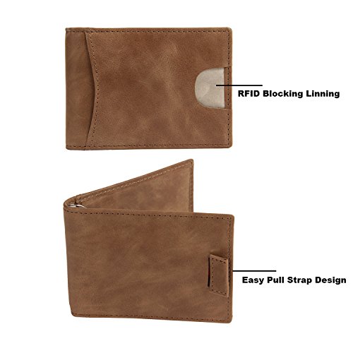 -. Feature : SAFETY. P.R.IVACY. SECURITY - Our wallets are equipped with advanced RFID SECURE Technology, a unique metal composite, engineered specifically to block 13.56 MHz or higher RFID signals and protect the valuable information stored on RFID chips from unauthorized scans / SLIM AND STYLISH -Designed Quick Access Inside ID Windows, Holds up to 10 cards plus US bills with no bulk, and a minimul Pull-tab design to reduce bulk.Item Size:L 4.2" x W 3.2" x H 0.2" / GENUINE LEATHER - Made with the Finest Full Grain genuine leather,looks classy and very slim, Wallet Size: 4" in. x 3" in. .4" in. / The MoreBeauty wallet is equipped with a front pocket made for your most used card. 2 pockets on the inside, with a photo ID slot, and a money clip to hold your cash. Wallet case also has smart pull-strap for quick access to your everyday cards. / NO HASSLE MONEY BACK GUARANTEE - We know you'll love our wallet as much as we do, if for any reason you're not 100% SATISFIED, let us know and our customer service team will make things right: full refund or a free replacement, whichever you prefer.