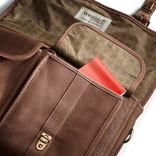 -. Brand : THE WRIGHT BROTHERS -. Color : Aviator Brown -. Department : mens -. EAN : 0855585006554 -. Feature : Full-grain leather finished with natural oils & waxes / Multiple interior pockets expand for varied sized of PDAs, cell phones and computer power systems / Large double front gusseted pockets / Outside back pocket & interior zippered pocket / Made in the U.S.A. -. PackageQuantity : 1 -. ProductGroup : Apparel -. ProductTypeName : LAGE -. Size : One Size -. Title : Leather flight bag -. UPC : 855585006554
