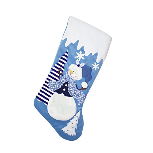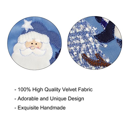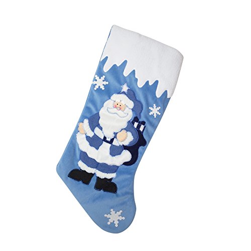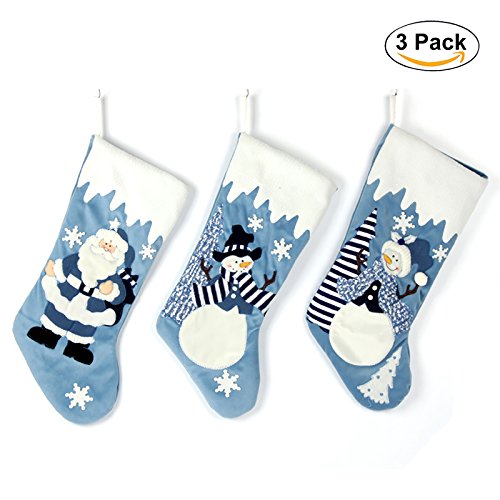 Set of 3 Blue and Silver White Snow 20 inch Velvet Christmas Stockings Elegant Pattern for Christmas Gift - Santa, Snowman
