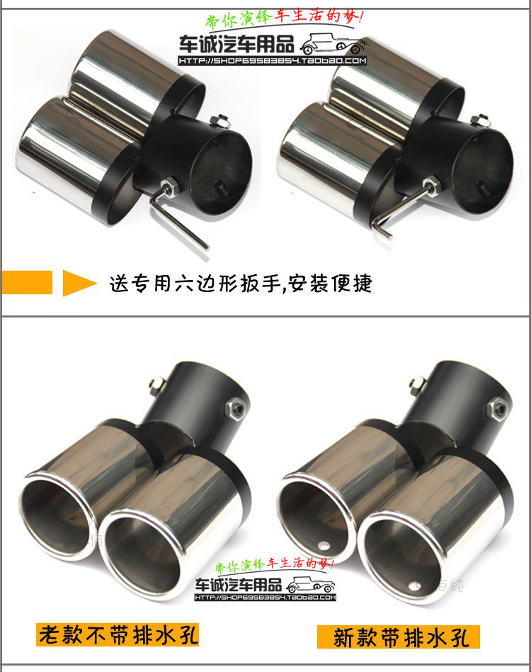 Silencing decorative tail laryngeal installation is also very simple, without any replacement parts. Simply choose good car models for the throat,relax with the fastening screw spanner tail throat, then will end in the throat of tailpipe proper position, and then screw the fastening can, the whole process in less than 5 minutes.