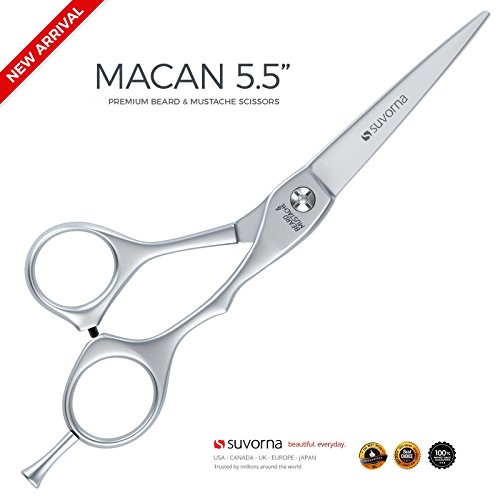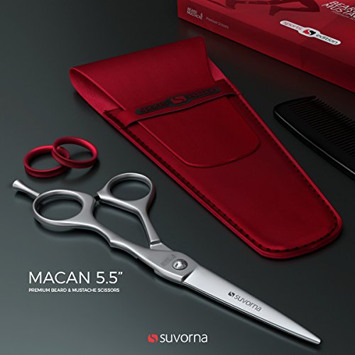 Suvorna MACAN 5.5" Men's Beard & Mustache Scissors (Sports Edition) with Red Leather Pouch, Comb & Tension Adjustment key. Designed for Next Level...