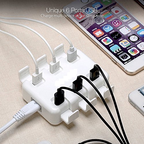 [All Devices Applicable] Charging 6 devices at the same time with high speed more than just for your iPad, iPhone, Android Smartphone, Sports Camera, or Game Machine with this handy, multi-port adapter. It will also power up your e-reader, Bluetooth headphones, portable speakers and nearly any other device that charges with a USB cord.