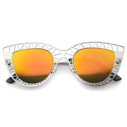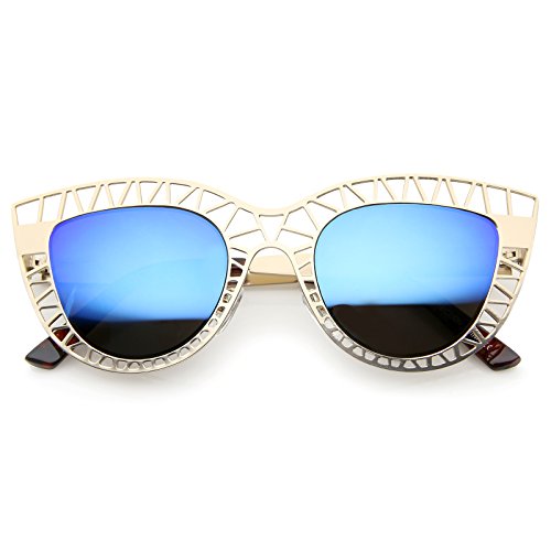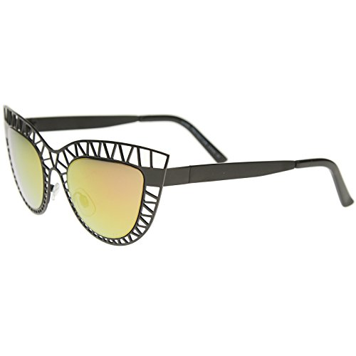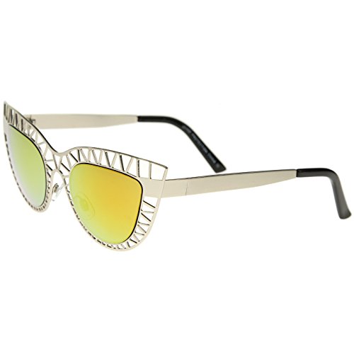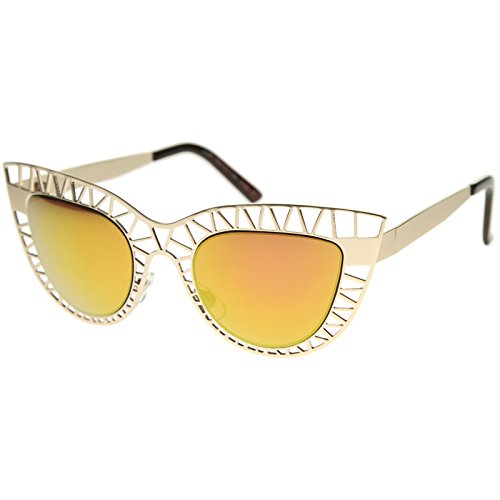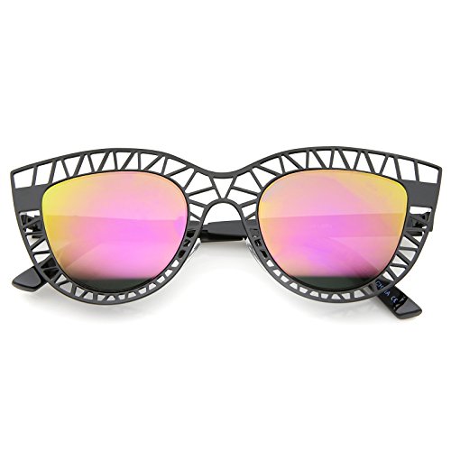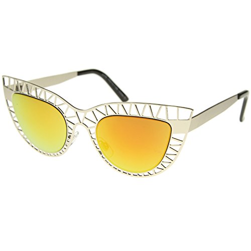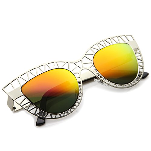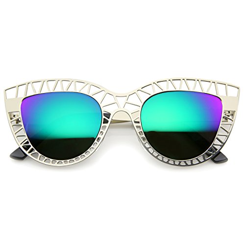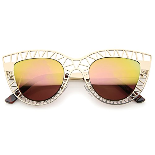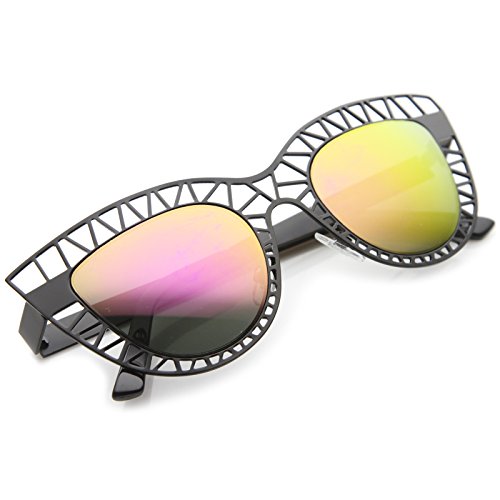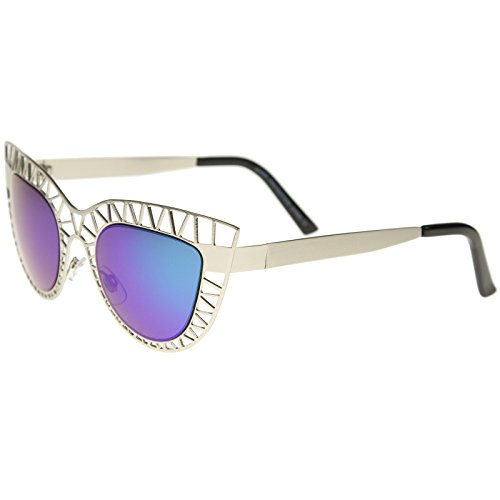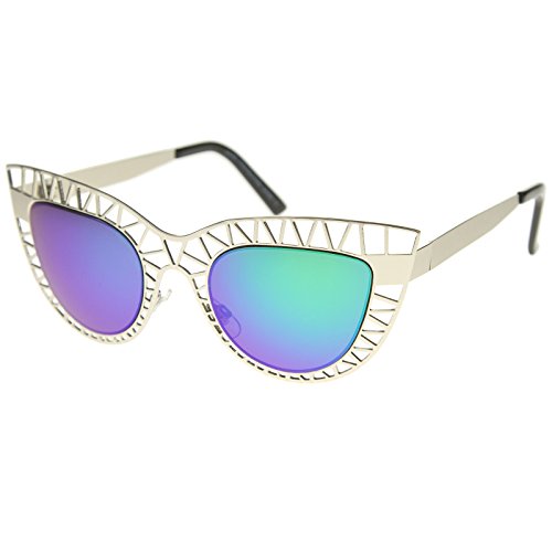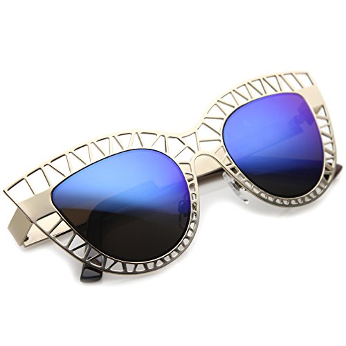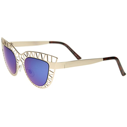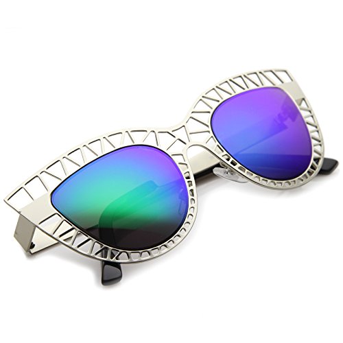 Studio : frameoptic Publisher : frameoptic Product Description Details This cat eye sunglass style is going to draw compliments left and right with its unique design. The metal cat eye frame has a laser cut out design giving this look a little edge. Add the round color mirrored lenses and you're set for the look you've always wanted. Finished with a metal based frame, adjustable English style nose pieces, metal hinges, and 100% UV protected lenses.