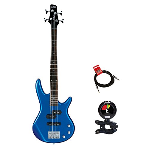 ibanez gsrm20 mikro short-scale bass guitar starlight blue with clip on tuner and strukture 10ft instrument cable ibanez gsrm20 mikro short-scale bass guitar starlight blue? small hands make big sounds with the ibanez mikro gsrm20. Pact bass has many of the features found in its bigger counterparts. ? following the great success of the mikro guitars, ibanez has now brought mikro basses into the fold, based on the soundgear line. The shortened 28. 6" scale is the perfect solution for smaller hands, younger players, or anywhere that space is at a premium. ? the body is crafted from agathis, with an easy to play maple neck and features a rosewood fingerboard topped with 22 medium frets. The gsrm20 houses a set of "p" (neck) and "j" (bridge) style pickups for the unlimited tonal possibilities. The chrome hardware brings it together with a b10 bridge and die-cast tuners. ? the ibanez mikro electric bass offers anyone who needspact axe orfort of a smaller neck (most especially young rockers) a real alternative to small bass guitars that are really only toys. ? features: - neck: grsm 4, 28. 60"