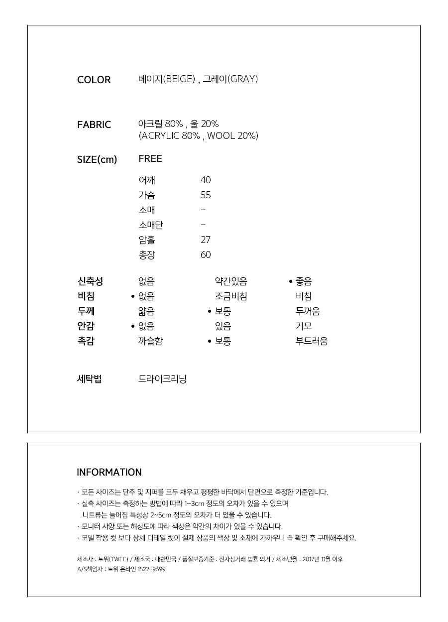 니트폴라나 원피스위에 걸쳐도 좋을만큼 품이 루즈하고