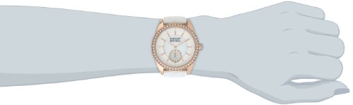 -. Feature : 40mm wide round rose gold-tone case / Bezel and crown accented with 58 clear Swarovski crystals / Mineral crystal / Dial with textured white outer zone and mother-of-pearl center zone / Rose gold-tone markers and clear Swarovski crystals at all hours