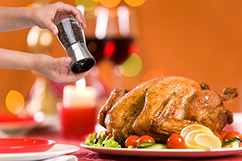 - ADJUSTABLE CERAMIC GRINDER: These salt and pepper shakers offer a premium ceramic grinder that’s adjustable so you can crush, grind, or mill peppers, peppercorns, salt or other spices to meet your cooking or dinner needs.