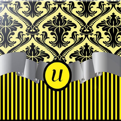 Rikki Knight RK-8intilec-2212 8" X 8" Letter "U" Yellow Damask Stripes Monogrammed Design Ceramic Art Tile