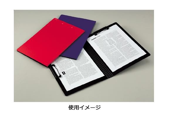 | 不透明の表紙なので、個人情報関連の書類や、簡単に見られたくない書類の保護に最適なクリップファイルです。表紙は360度折り返せるので、立ったままの筆記でも書き込みやすいのが特徴です。 |